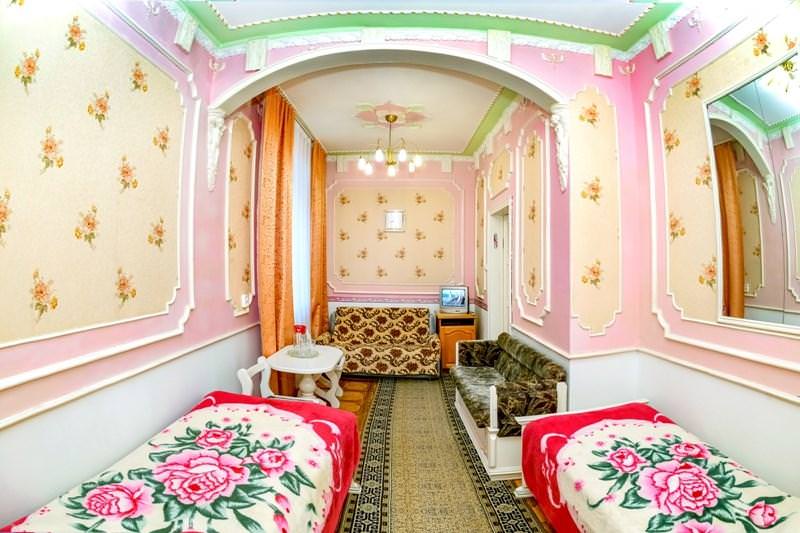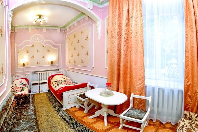 Просторный однокомнатный номер. Интерьер создан для комфортного размещения двух гостей. Номер оснащен: двумя односпальными кроватями, диваном(креслом), телевизором, холодильником, кофейным столиком и стульями, ванной комнатой, феном.